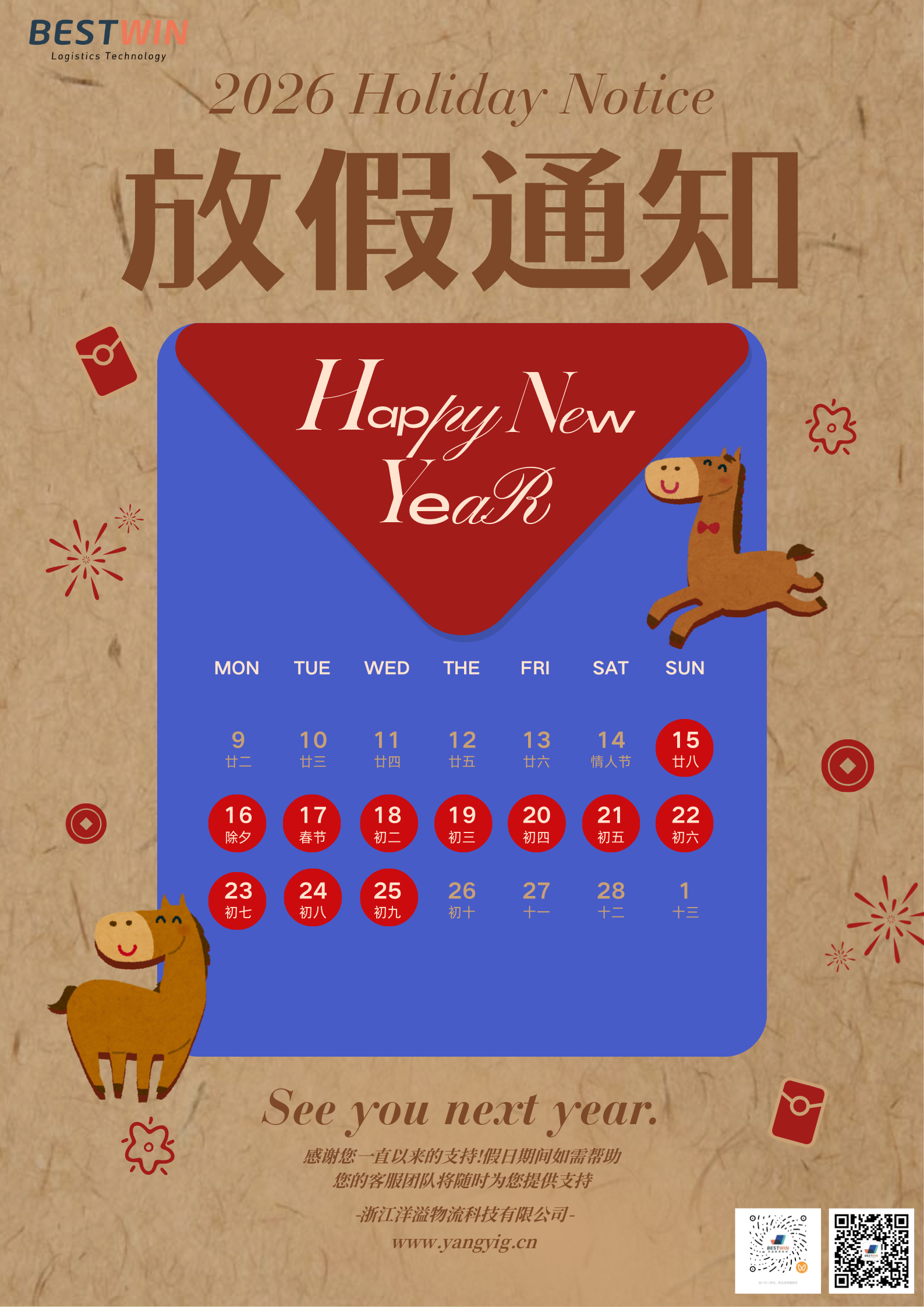 BESTWIN放假通知