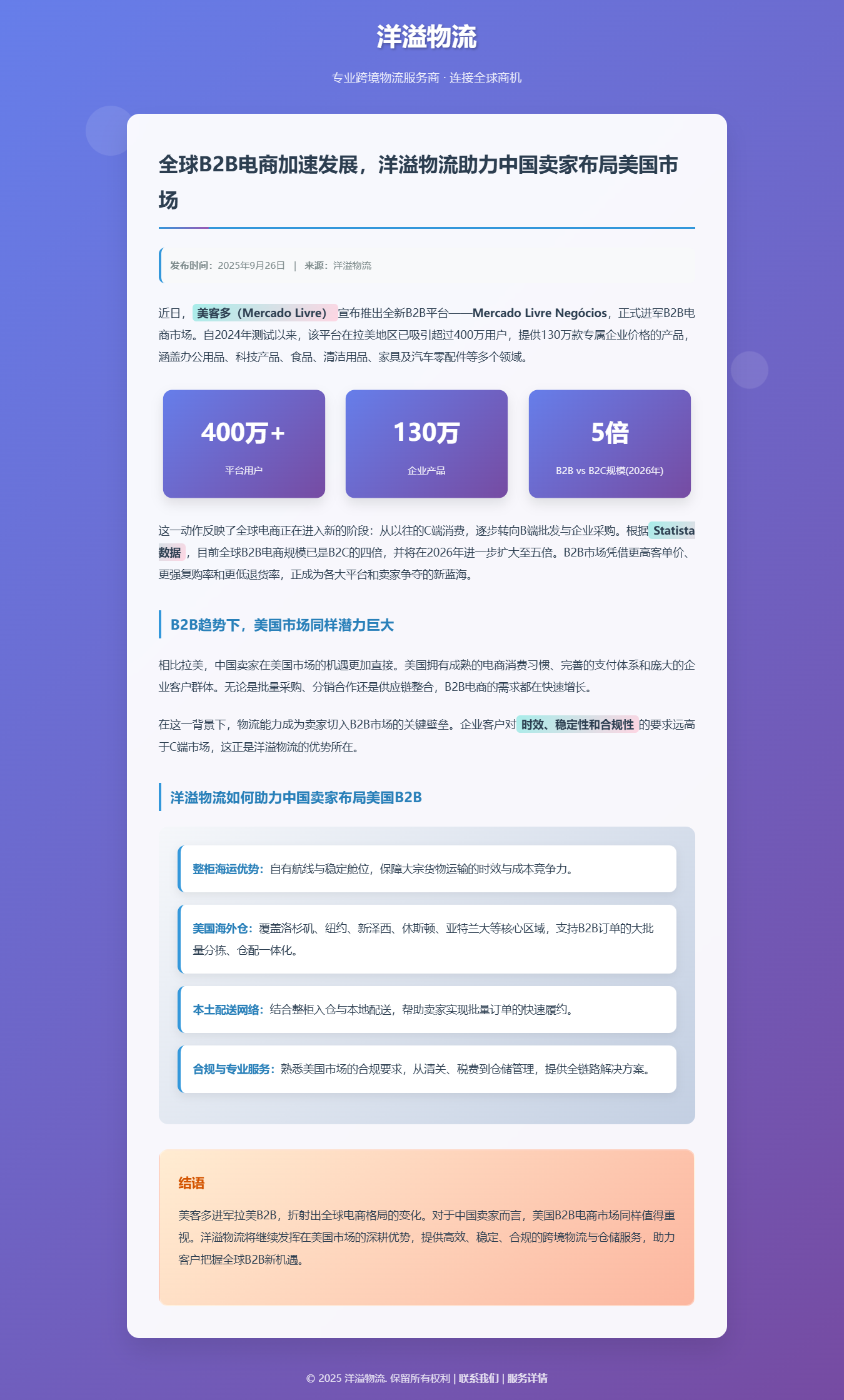 全球B2B电商加速发展,洋溢物流助力中国卖家布局美国市场
