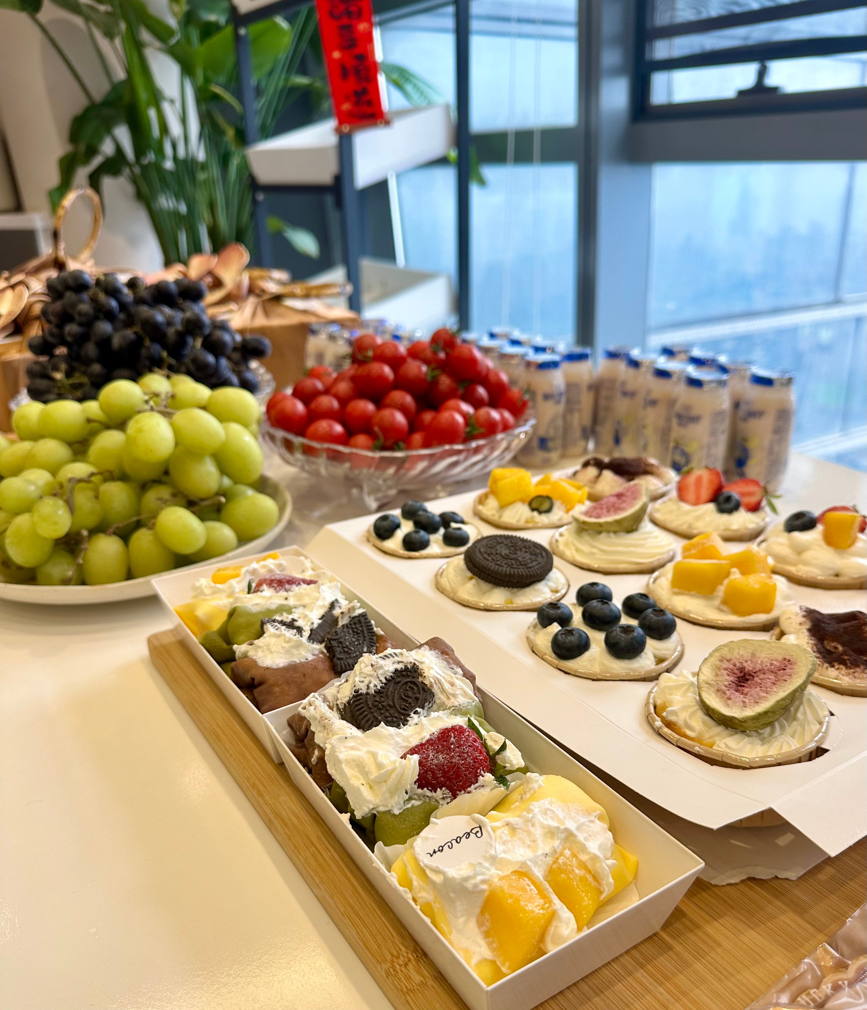 On the day of the event, flowers and desserts brightened the office, and everyone gathered briefly in a relaxed atmosphere to enjoy the treats and share some laughter, bringing a sense of celebration to an ordinary workday.